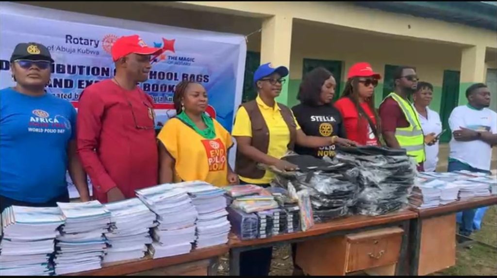 The Rotary Club of Abuja, Kubwa, in the Federal Capital Territory (FCT) has donated education materials to primary school pupils in Kungabokun village, in Kubwa Satellite town of Abuja in the Federal Capital Territory (FCT).
